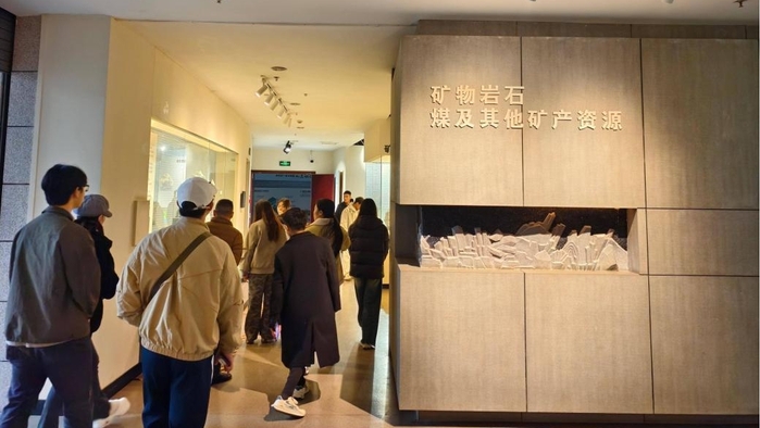 随后,师生们步入自然矿产陈列馆,这里宛如一座“地球能源宝库”,展柜中整齐陈列着从全国各地采集的煤、石油、天然气伴生矿以及风能、太阳能相关的地质成因标本。讲解员结合标本旁的地质剖面图,详细介绍了不同能源矿产的形成年代、地质条件及鉴别特征,员工们纷纷驻足观察,用手机拍摄标本细节,对能源资源的形成机理、分布规律及开发价值有了前所未有的直观认知。